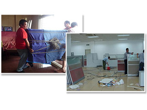 到達(dá)目的地后鋪設(shè)地板保護(hù)材料后開(kāi)始工作;電器類(lèi)按要求接通電源及其他線路。